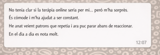 Habitualment, setmanals a l’inici. A mesura que avances i consolides canvis, podem espaiar-les. Ho decidim conjuntament, segons la teva evolució i necessitats.