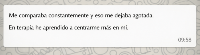Me ofrezco a acompañarte a recuperar la propia relación contigo, conocer de dónde vienen estas exigencias, qué las mantiene vivas y cómo comenzar a hablarte de una forma más amorosa, de una manera que te acompañe y no te castiga. No es mágico, no es un eslógan. Es un proceso real, humano y sostenible.
