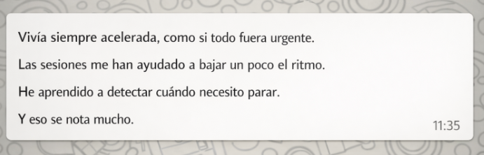 Me ofrezco a acompañarte a entender que te está generando estrés, cómo afecta tu cuerpo, tus pensamientos i tu día a día, y cómo empezar a recuperar un ritmo que te respecte.